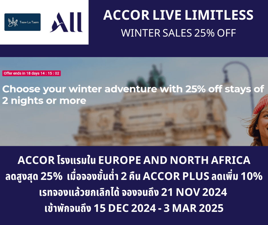 ถ้าเป็น Sofitel และ MGallery hotels จองได้ตั้งแต่ 2 ธันวาคม 2024