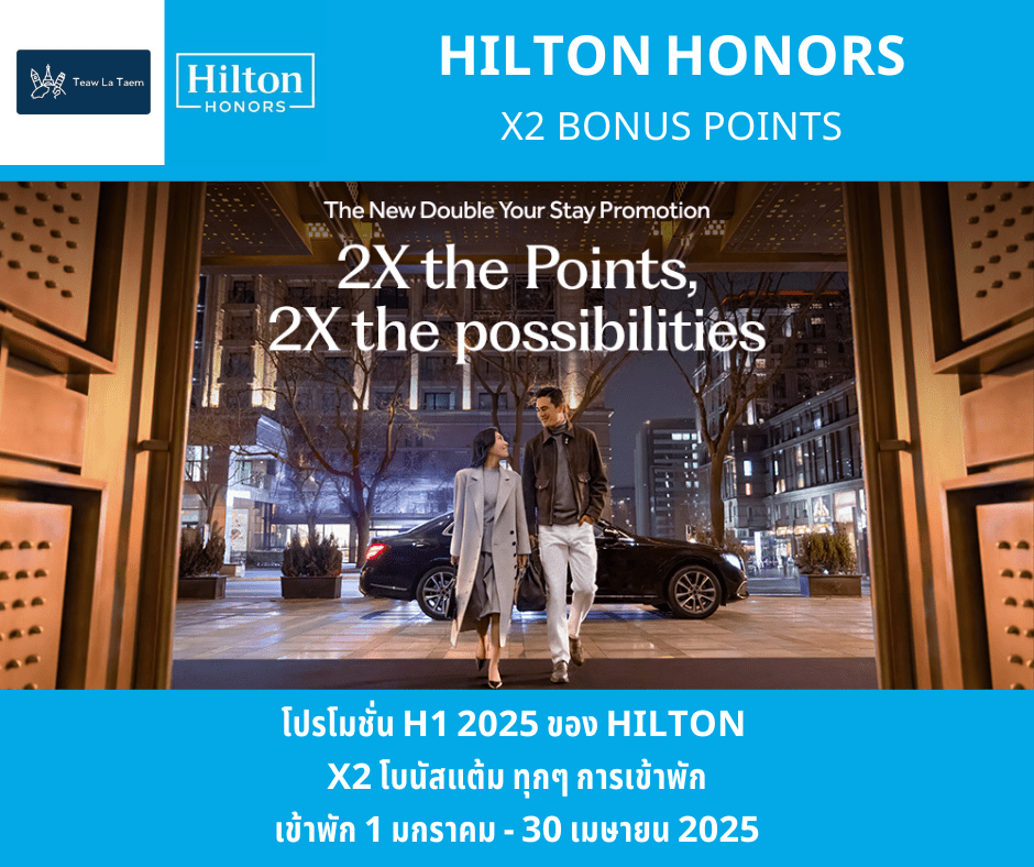 Hilton Honors : X2 Points on Every Stay Stay 1 Jan – 30 Apr 2025