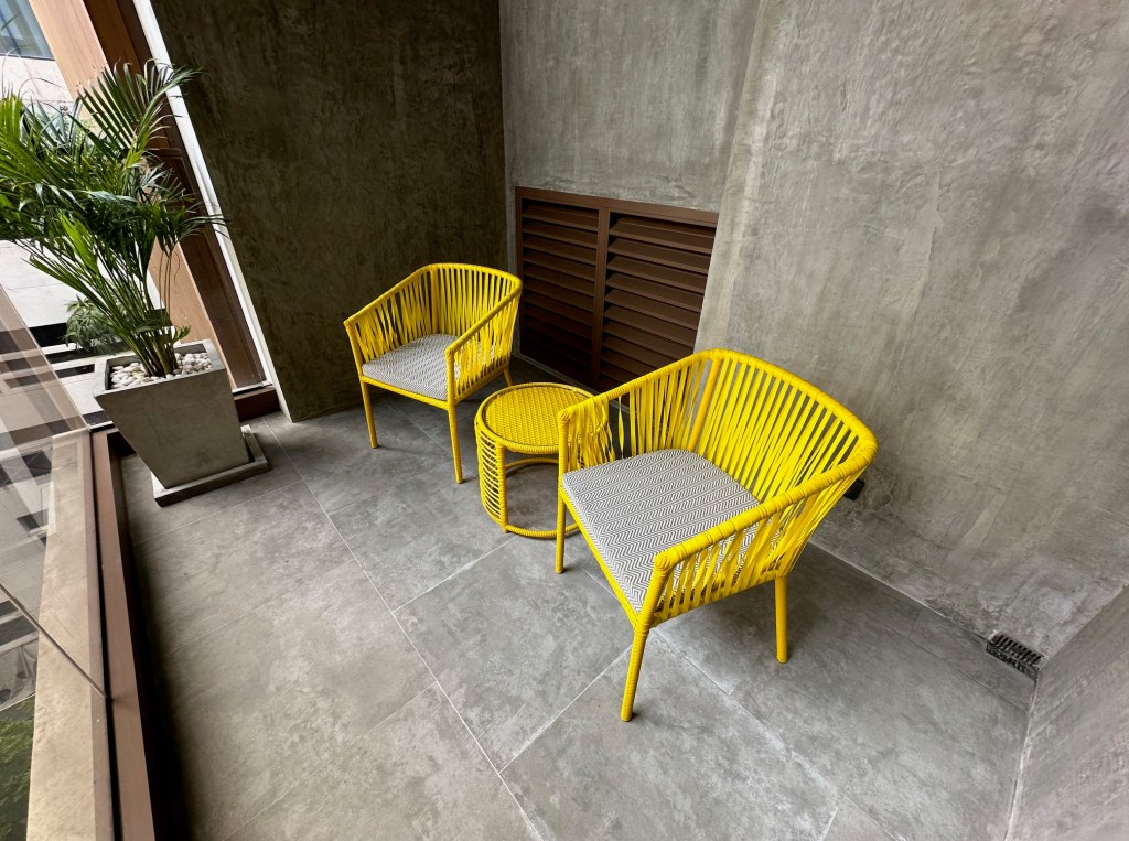This room offers a view of the front of the hotel, complete with a private balcony and outdoor seating area. This is definitely the highlight of the room.