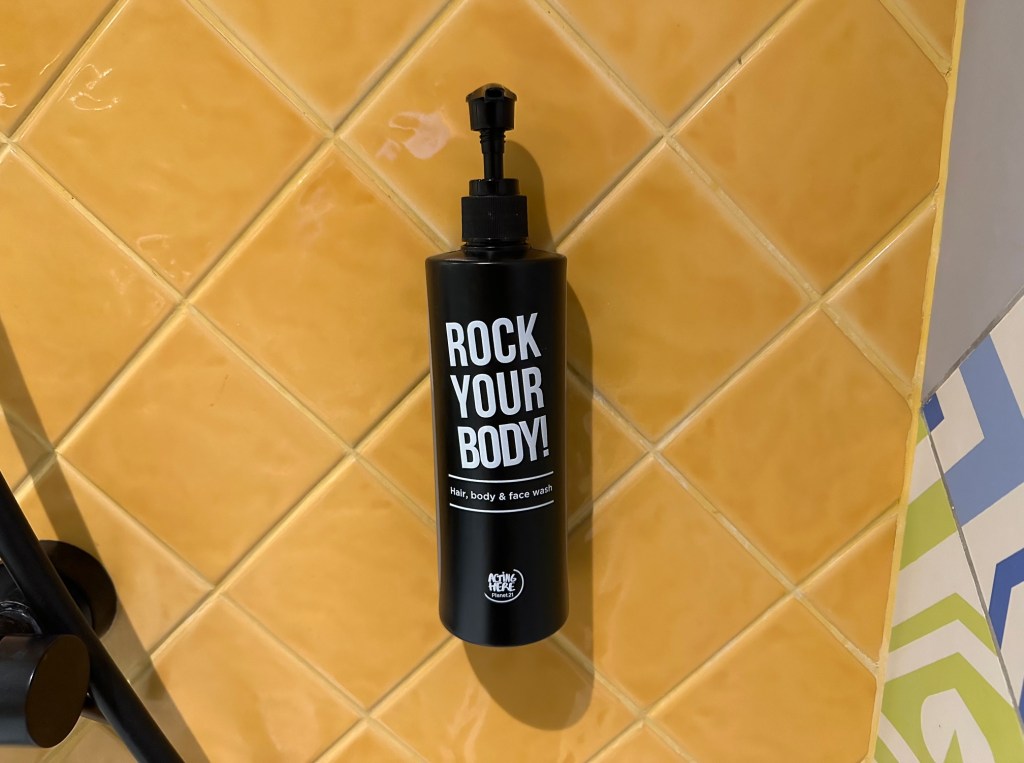 The soap and shampoo are all-in-one, with a pleasant fragrance.