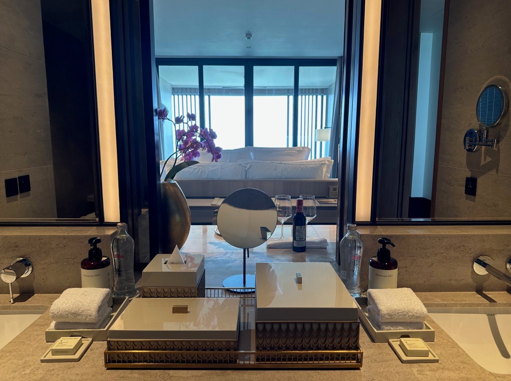 อุปกรณ์ต่างๆ มีให้ครบถ้วนจริงๆ หวี มีดโกนหนวด แปรงสีฟัน ยาสีฟันเป็น Marvis!! สมกับเป็น Ultra Luxury Hotel