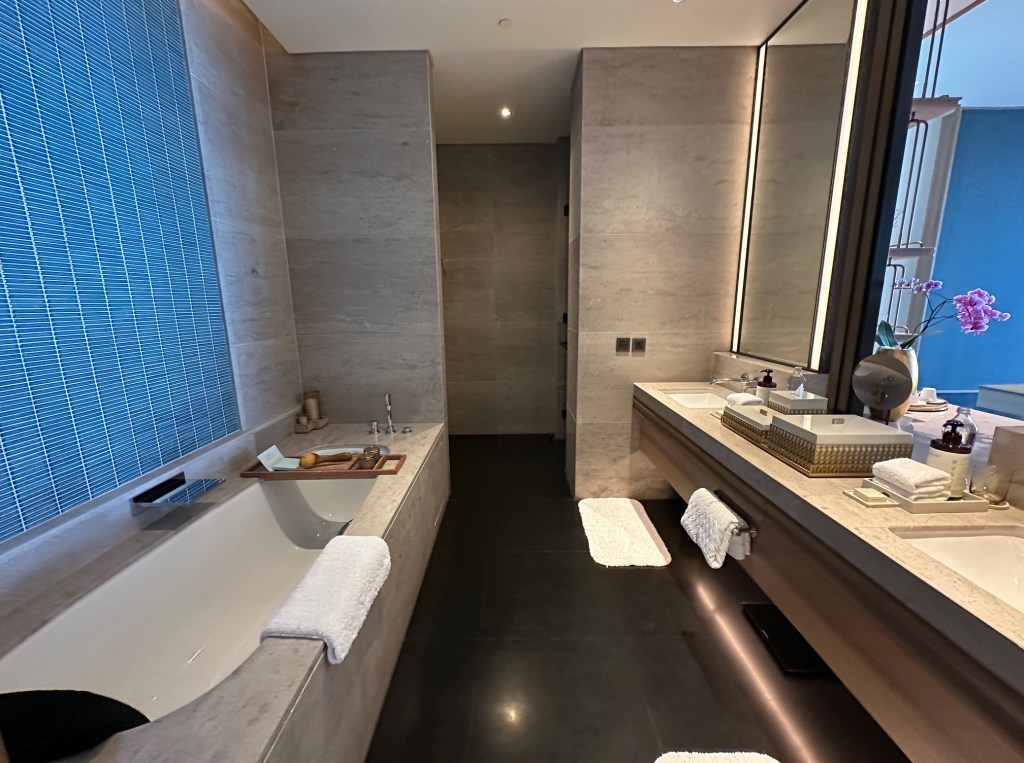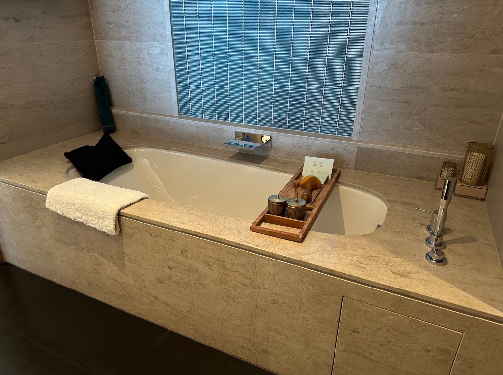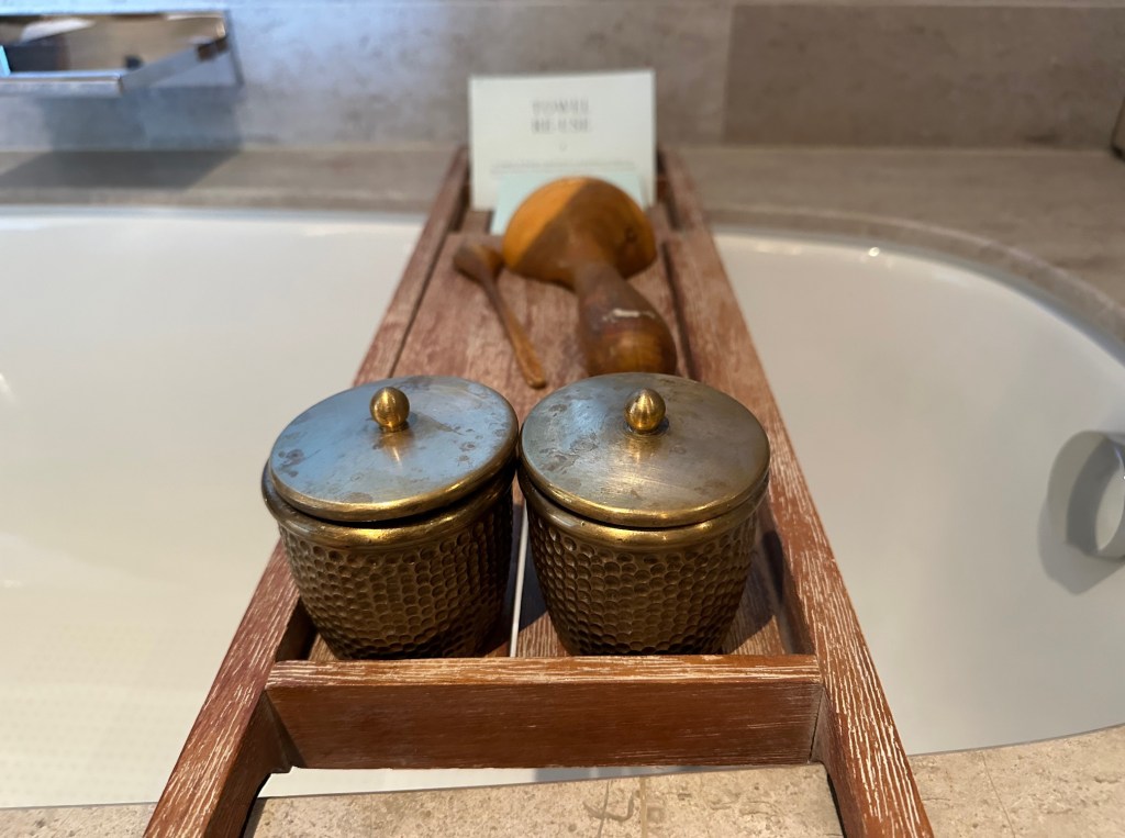 อ่างขนาดใหญ่หรูหรา สมกับเป็น Ultra Luxury Hotel จริงๆ มีหมอนให้มาด้วย เกลือสปา ถีง 2 กลิ่น ที่ขัดผิว