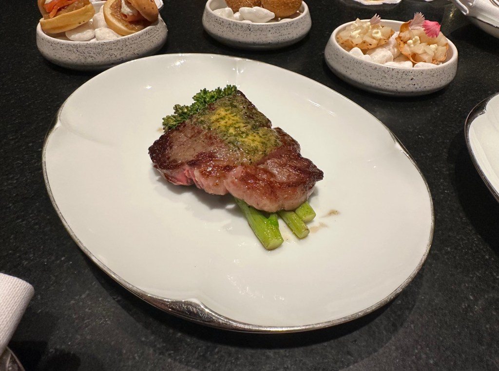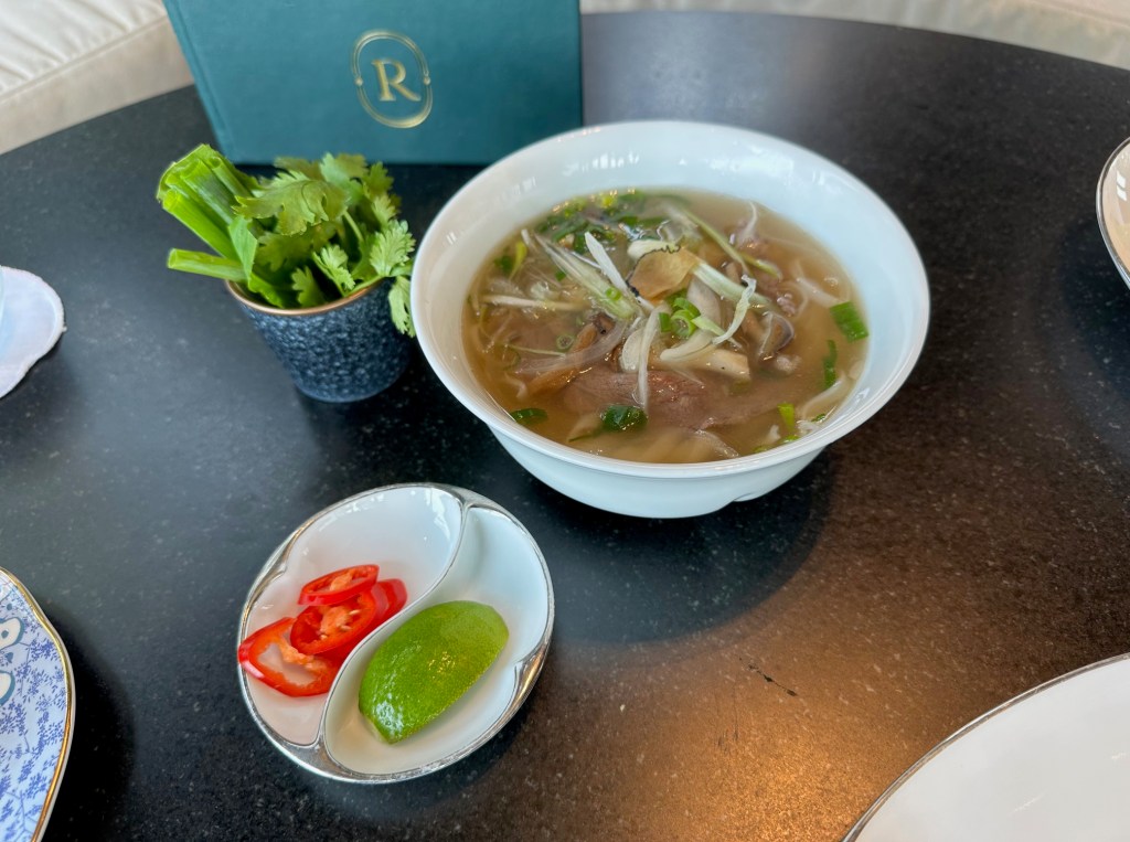 Dishes like Wagyu Pho, premium steak, snow fish, and lobster rolls were all complimentary. They also served premium champagne all day. The food was delicious and of the highest quality. The Regent Club has its own kitchen and chefs who prepare fresh dishes throughout the day.