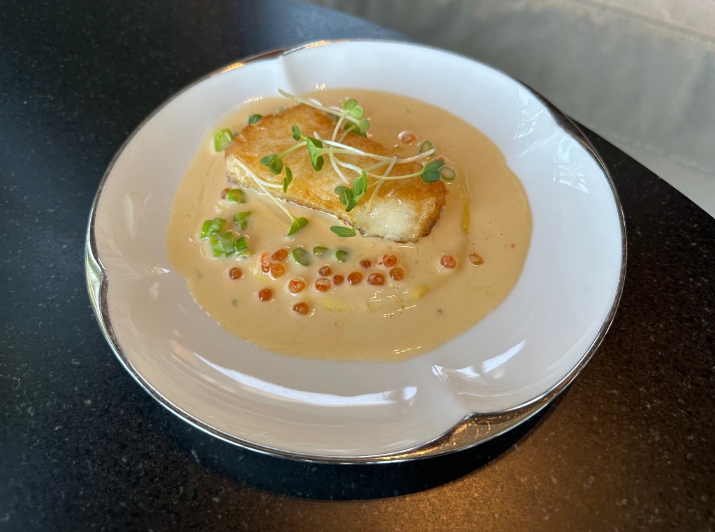 Patagonia Toothfish ปลาหิมะ ย่างมาอย่างดี ซอสมาแนวข้าวโพด หวานๆ ครีมๆ หน่อย อร่อยสุดๆ
