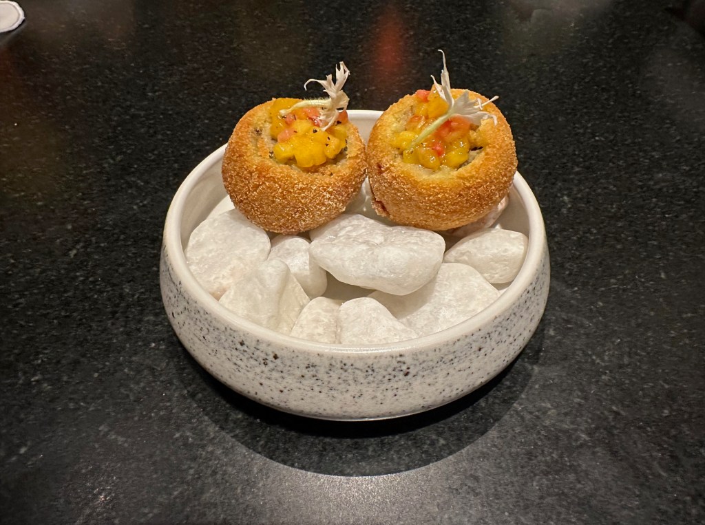 The fried items were very crispy on the outside. Inside was a filling of mango and minced pork, which was delicious.