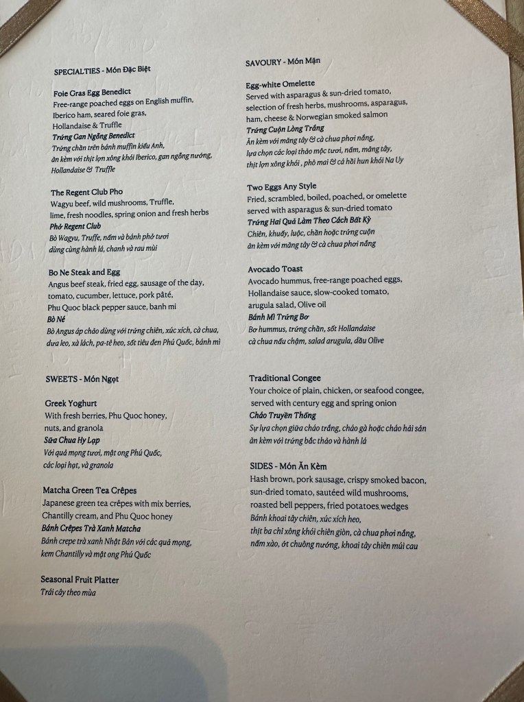 The Regent Club’s Afternoon Tea, Evening Cocktail, and breakfast were all premium and of the highest quality, with exceptional ingredients and culinary artistry. It truly embodied the Ultra Luxury Hotel experience, with everything carefully selected for the best quality.