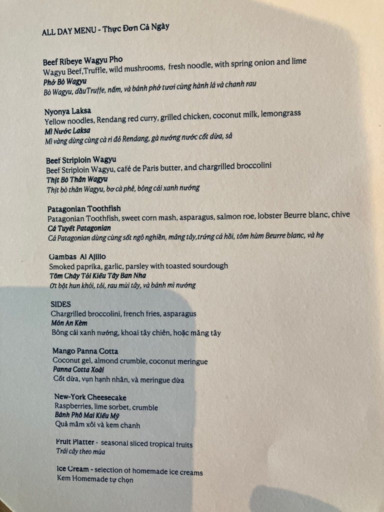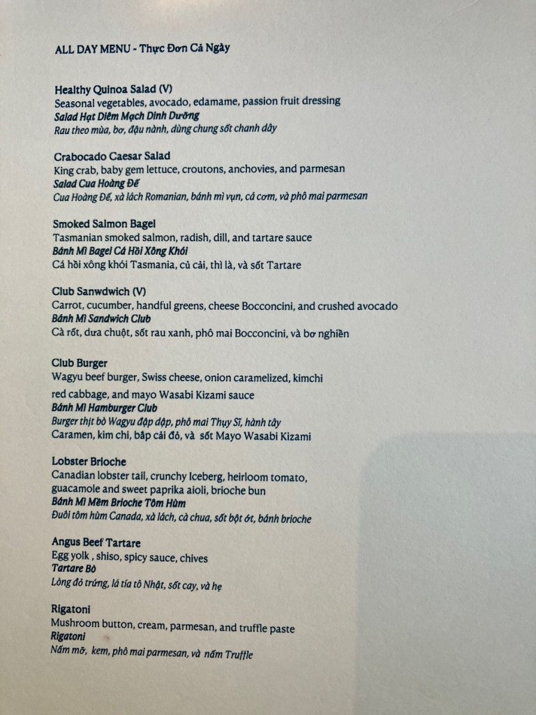 One of the most outstanding features of the Regent Club here is the All-day Dining, offering a luxurious and premium menu with over 20 dishes. You can order and enjoy them all day at the Regent Club at no additional cost! At a hotel of this caliber, dishes typically cost no less than 1,000 baht each, including Wagyu Pho, premium steak, snow fish, and lobster bread – all free of charge! It’s absolutely amazing.