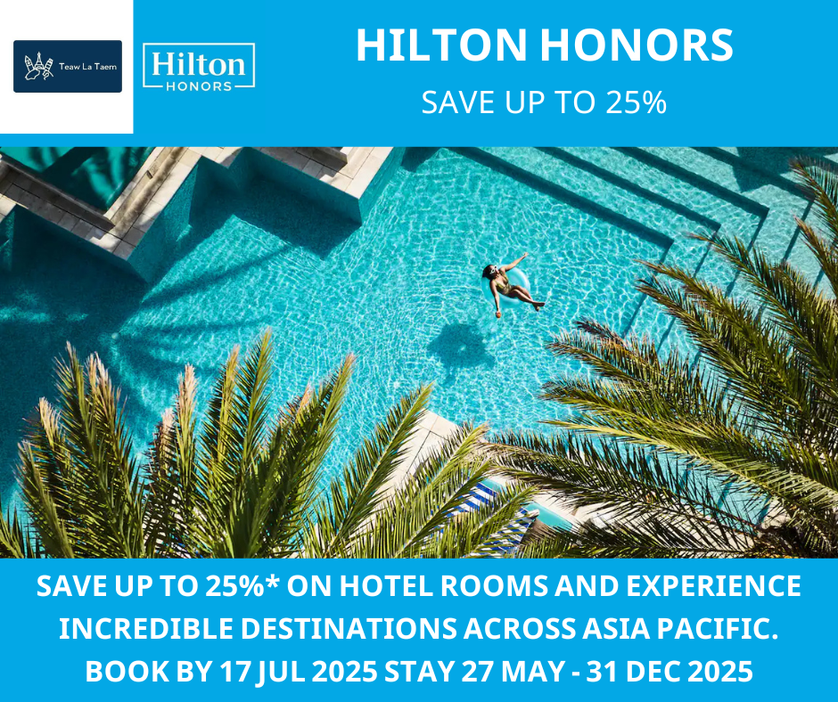 Hilton Honors : Save up to 25%* Asia Pacific Stay Stay 27 May – 31 Dec 2025 (Book By 17 Jul 2025)