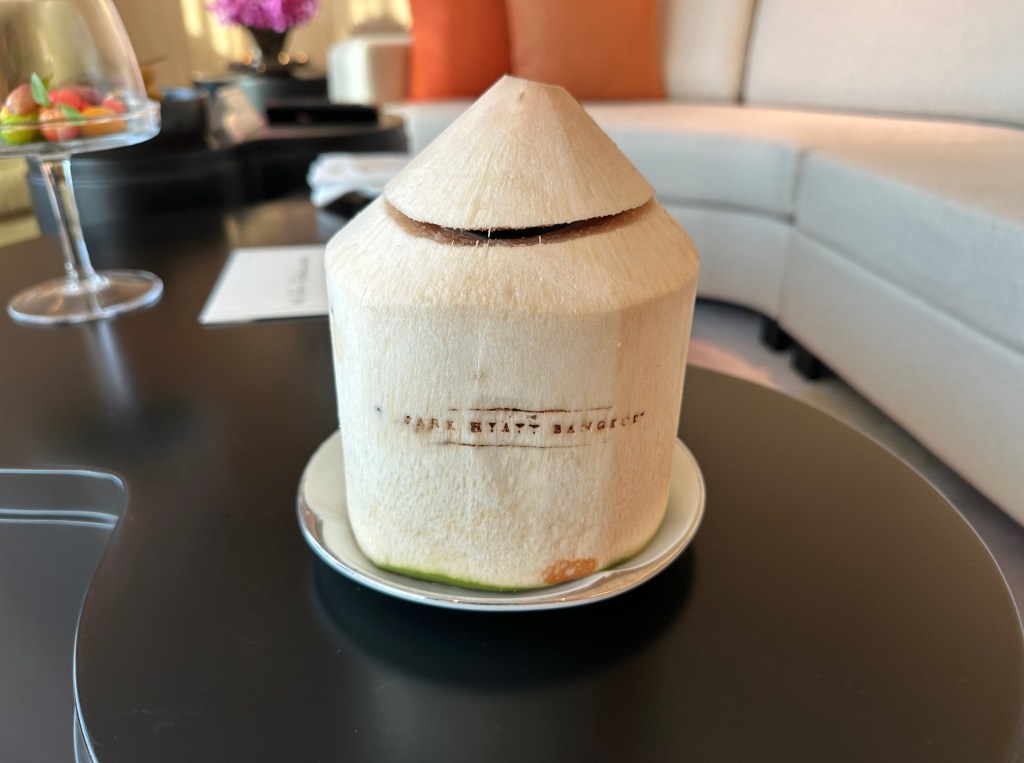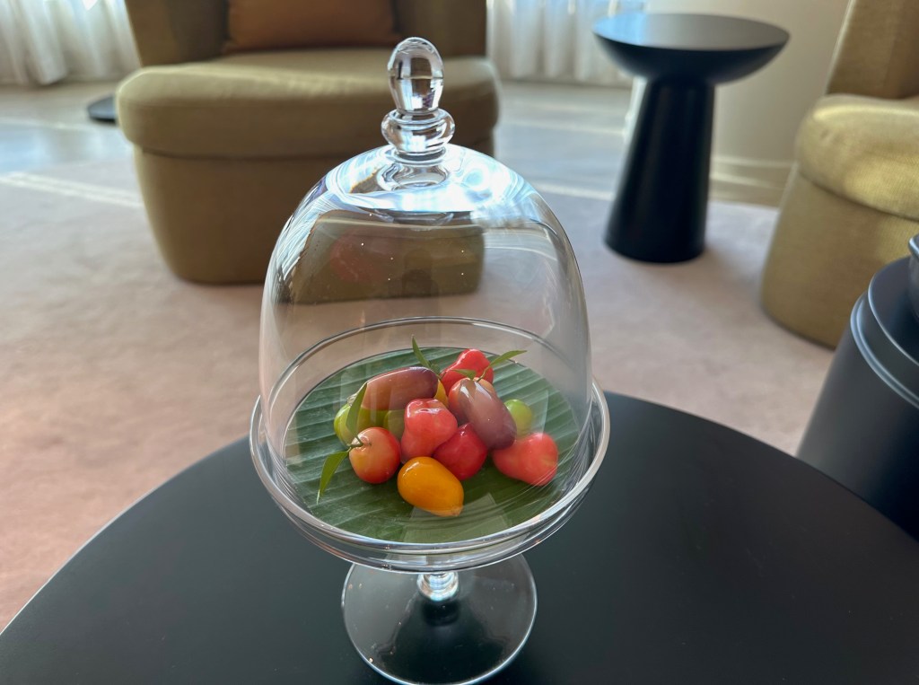 As a welcome amenity, you’ll find fresh Thai young coconut, Luk Chup (Thai miniature fruits desserts), and longan fruit.