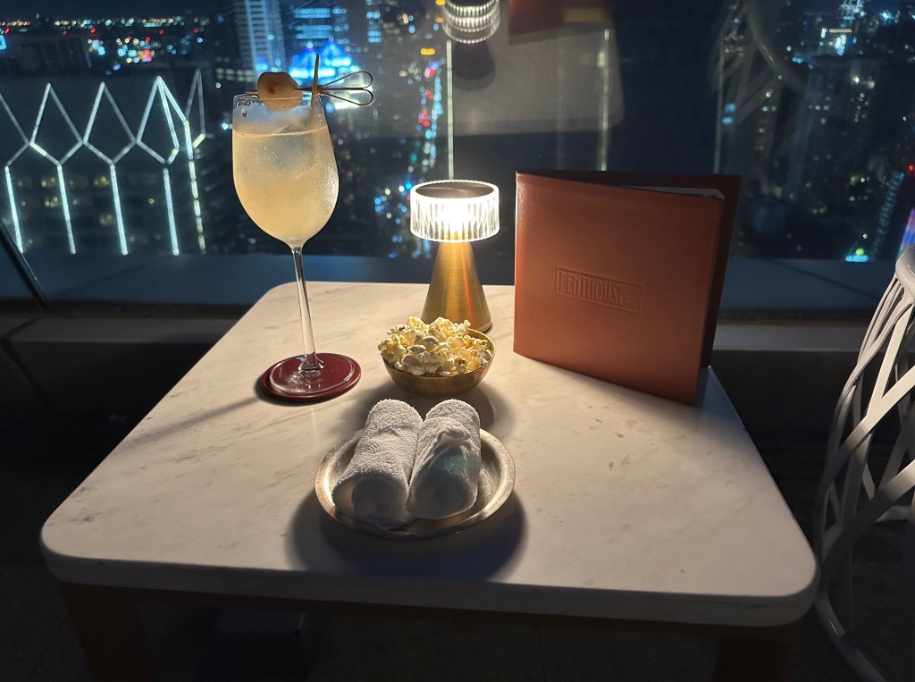 The Rooftop Bar (Level 36) at the penthouse is a spectacular spot for drinks amidst Bangkok’s night skyline, set in an outdoor garden lounge. The drink prices here are surprisingly good, especially for a hotel bar of this caliber—it genuinely took me by surprise!