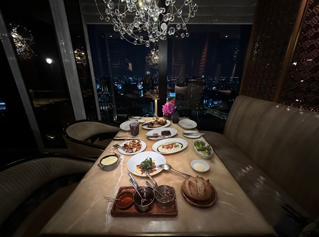 The Grill (Level 34) ครัวแบบเปิดที่จัดเตรียมเนื้อและอาหารทะเลชั้นดีจากทั่วทุกมุมโลก อาหารสุดพรีเมี่ยมและบรรยากาศสุดแสนโรแมนติก