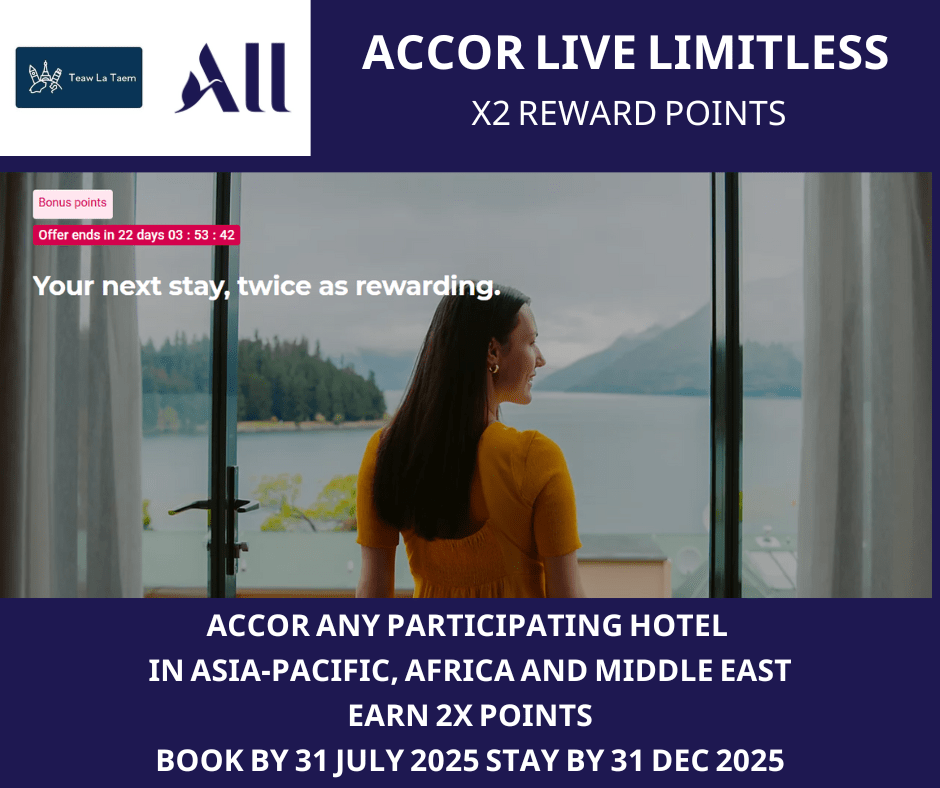 Turn every trip into something more with 2X Reward points across Asia Pacific, the Middle East, and Africa.Whether it’s a stylish city escape at Pullman, a flavourful stay at Mövenpick, family getaways at Novotel, or fuss-free comfort at ibis – every journey becomes more rewarding with ALL.
