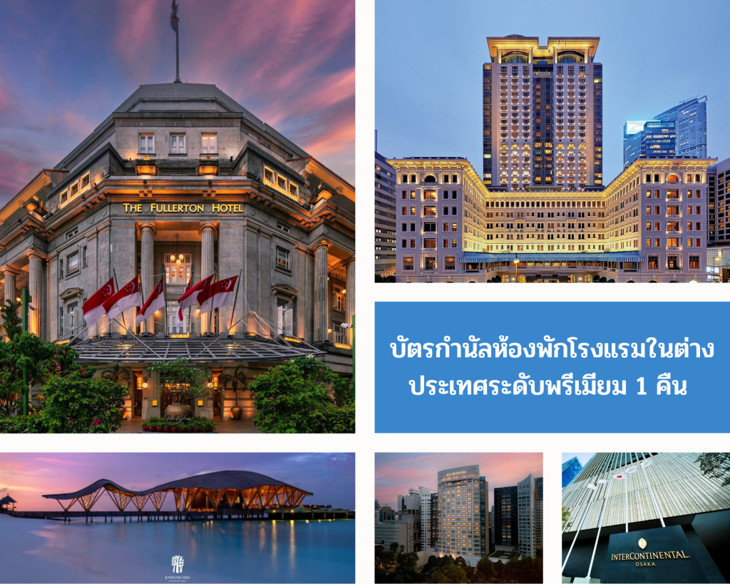 บัตรกำนัลห้องพักโรงแรมในต่างประเทศระดับพรีเมียม 1 คืน* อาทิ