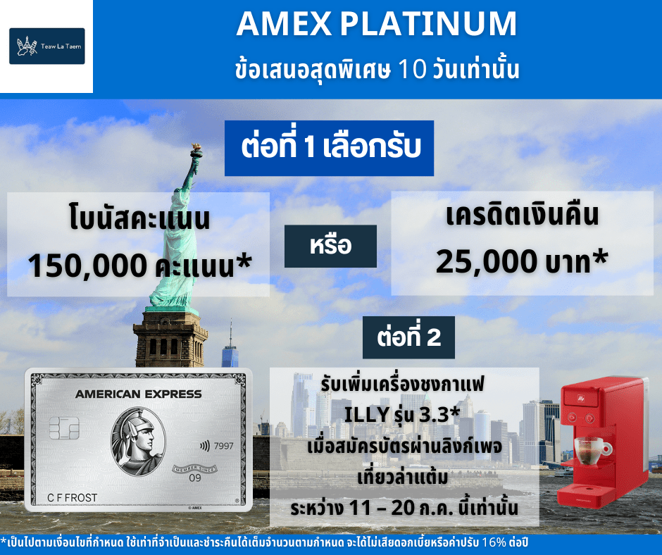 *คลิกเพื่อศึกษาข้อกำหนดและเงื่อนไขเพิ่มเติม https://www.americanexpress.com/…/thai-platinum-card/