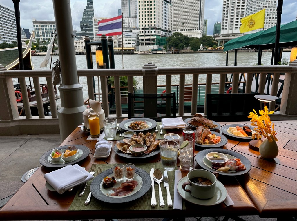 Breakfast is served right by the Chao Phraya River at the River Café & Terrace restaurant.