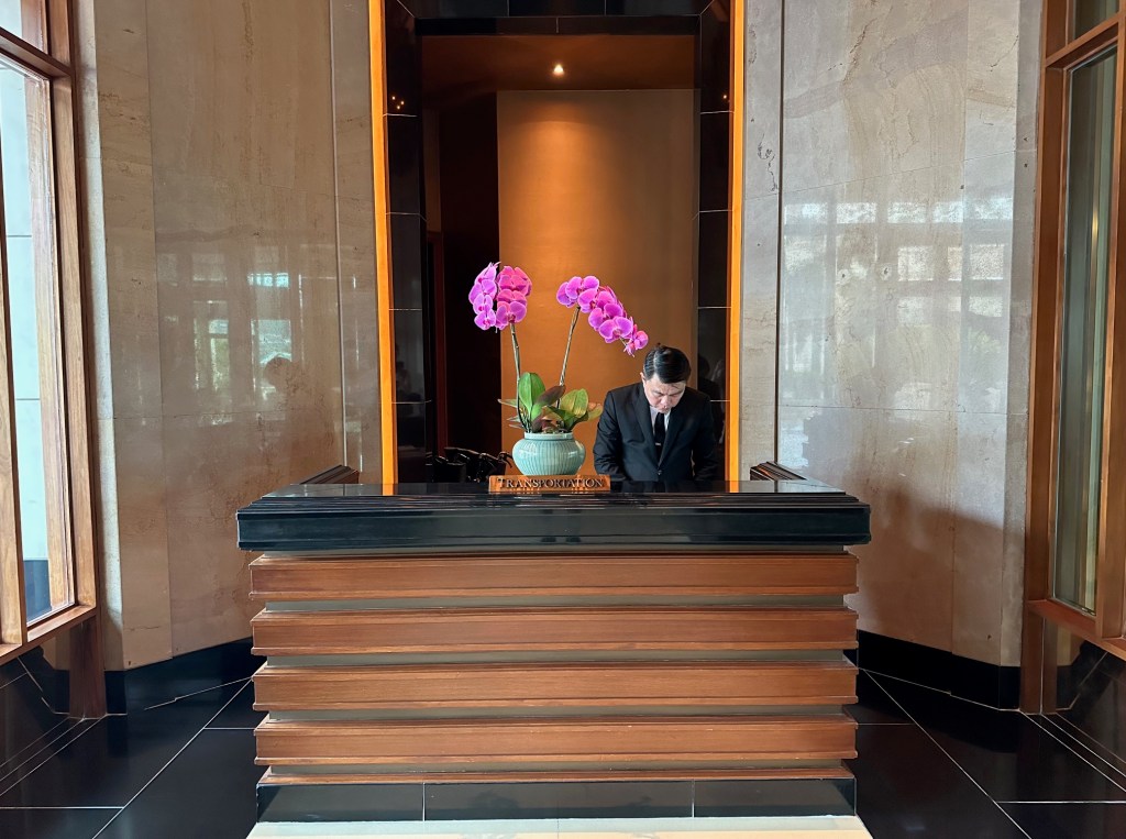 The check-in area is located separately to the left, designed to ensure guests’ privacy.