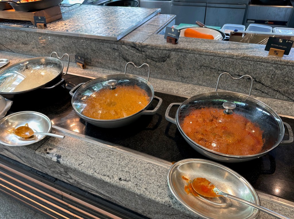 Don’t miss the live pasta station, a huge salt-baked fish, and a variety of Indian dishes.