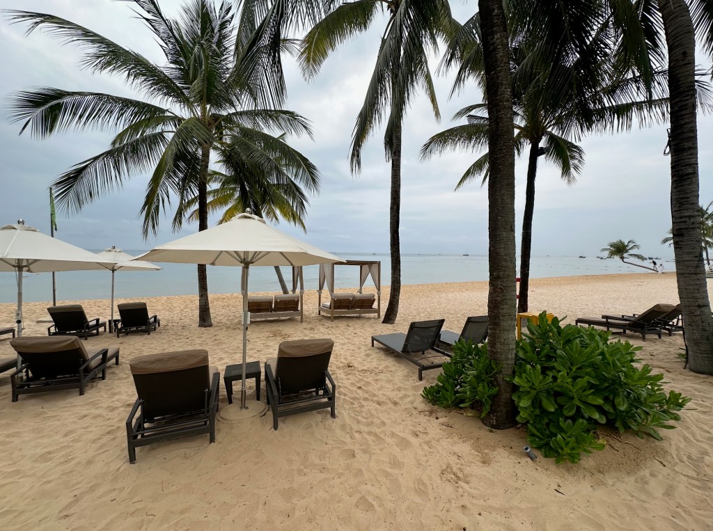 และที่ InterContinental Phu Quoc Long Beach Resort มีชายหาดส่วนตัวด้วยนะครับ บรรยากาศดี มีที่นั่งริมชายหาดเยอะเลย