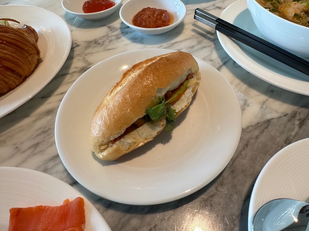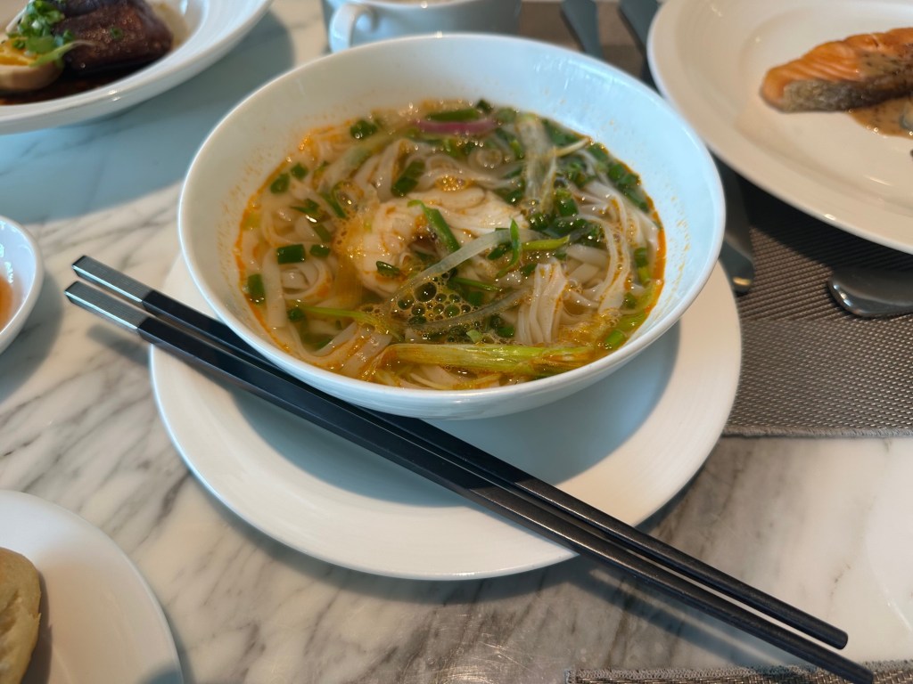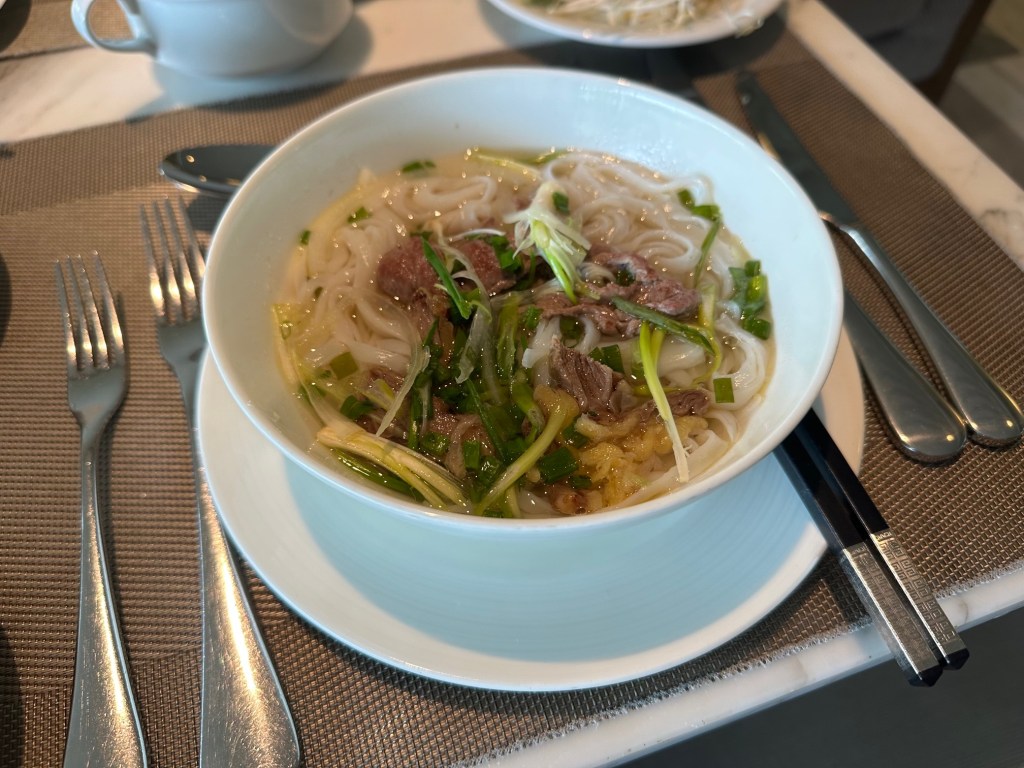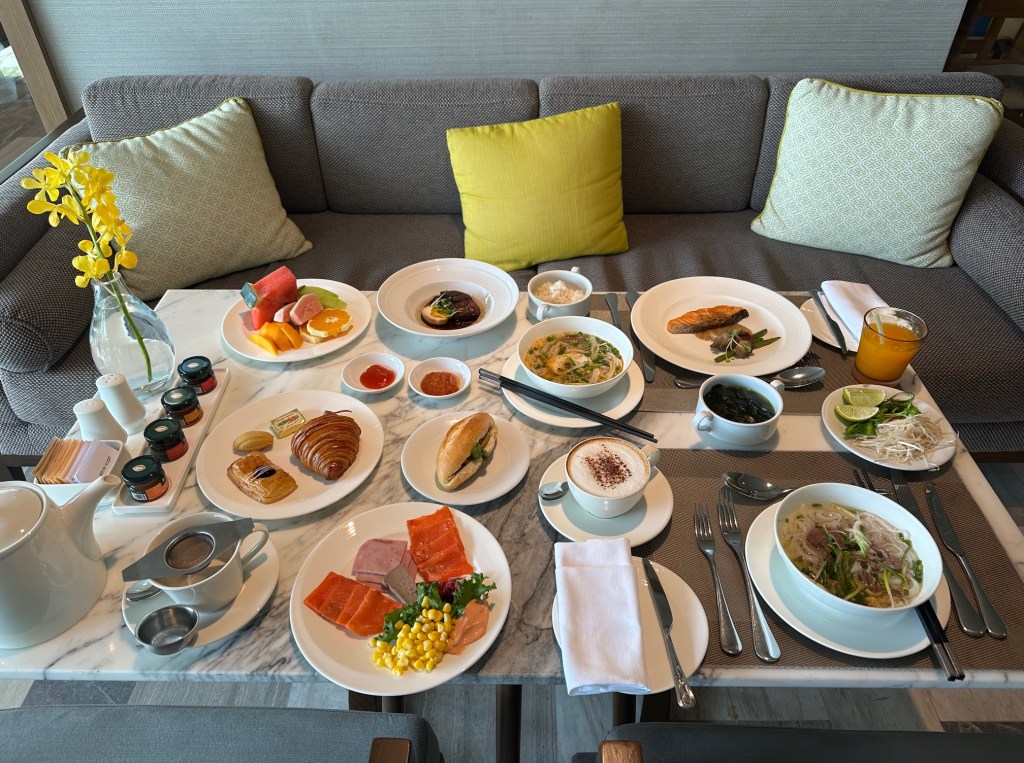 There’s a small buffet line, but most of the breakfast menu is made to order. The food here is incredibly diverse and delicious, with Vietnamese, Korean, and Japanese options.
