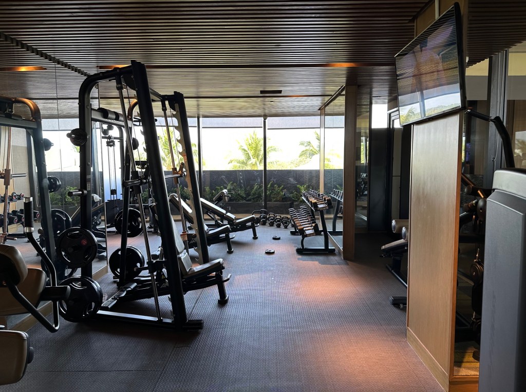 The fitness center here is fully equipped, and you can work out every part of your body.