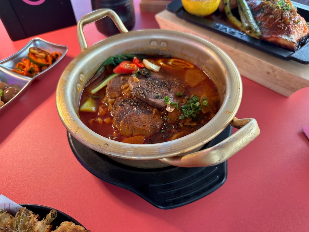 The large pieces of beef are so tender they melt in your mouth, and the flavor blends perfectly into the rich soup. The beef soup ramyeon is absolutely amazing and is a fantastic new dish