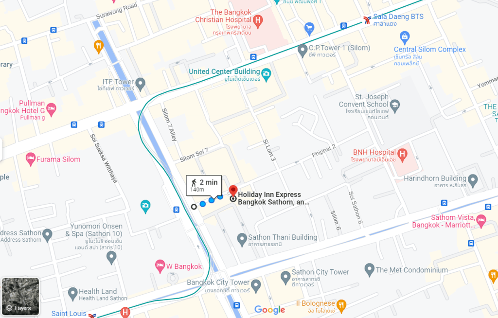 Holiday Inn Express Bangkok Sathorn is super close to Chong Nonsi BTS station, just a 200-meter walk.
