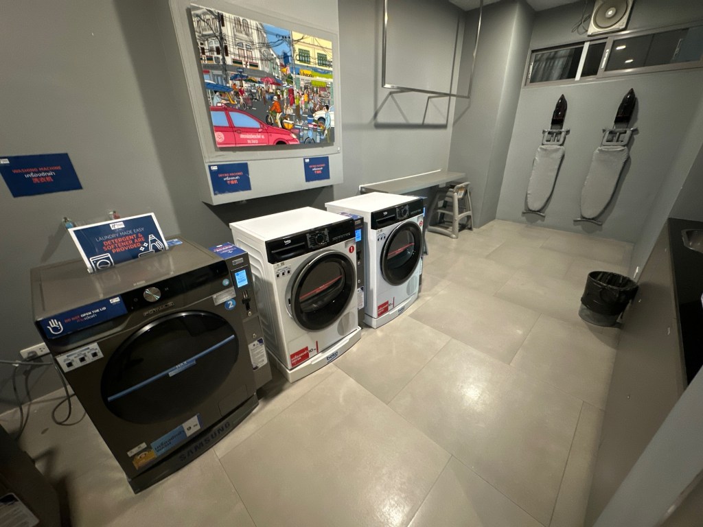 ที่นี้มี ห้องซักผัก หยอดเหรียญให้บริการ และ มีเตารีด ในห้องนี้เลย