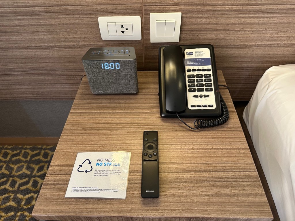 เตียงก็นอนสบาย ครับ มีโทรศัพท์ นาฬิกาปลุกที่หัวเตียงครับ มีตู้เซฟ ให้นะครับ ตู้เย็น ก็มีให้ครับ