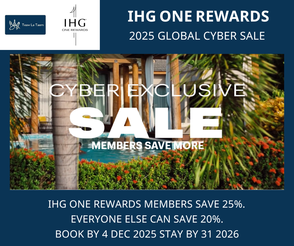- IHG Hotels & Resorts Cyber Sale Offer – members save 25% and non-members save 20%. Promotional rates are valid across participating properties and brands in the Americas, Europe, Greater China, East Asia, South Asia, Southeast Asia, Australia, New Zealand and the Pacific, on bookings made between 20 November and 4 December 2025 for stays between 23 November 2025 and 31 March 2026, globally at participating IHG Hotels & Resorts.