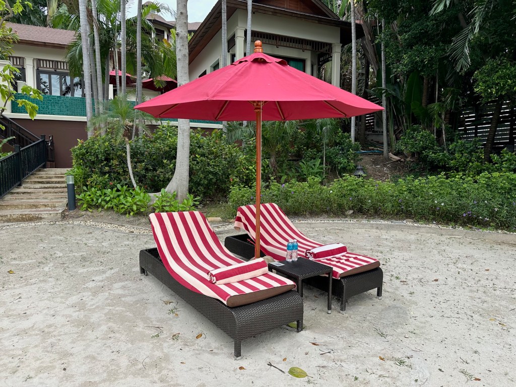 เริ่มจาก มีที่นอนหาดชายส่วนริมทะเลส่วนตัว แต่หาดที่นี้เล่นน้ำไม่ได้นะครับ มีที่นั่งศาลาส่วนตัว