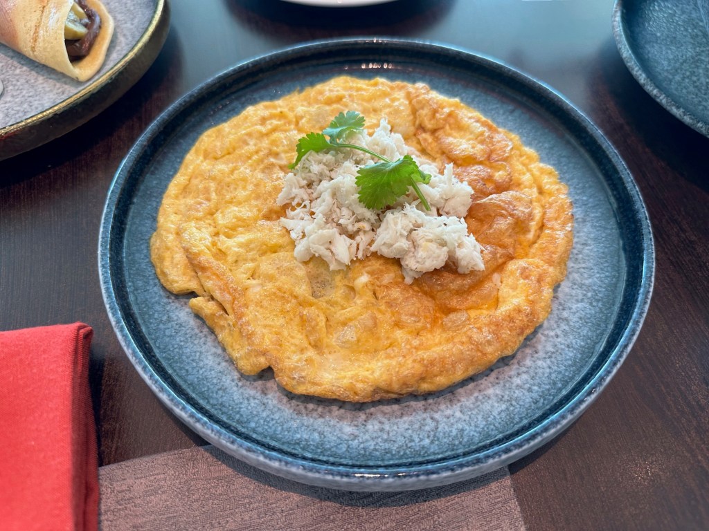 The crab omelet is incredible! It’s overflowing with crab meat like this. Absolutely amazing.