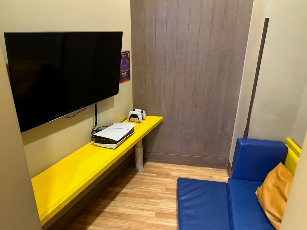 There’s a large-screen TV, a sofa area, and a sofa bed, which can comfortably accommodate several people. It’s fantastic.