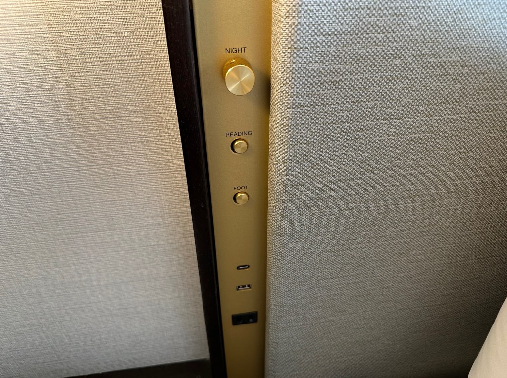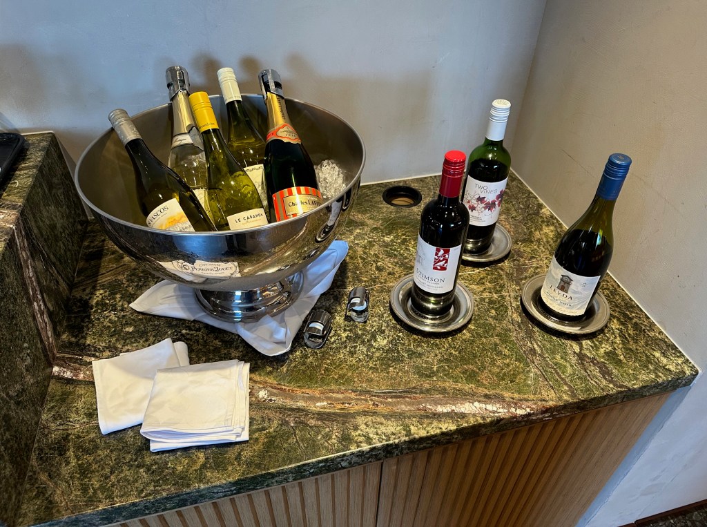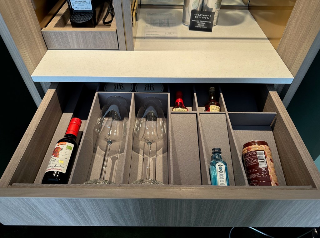 The tea selection is TWG, generously stocked and presented like a luxury hotel brand, including green tea, along with a Nespresso coffee machine. The minibar is stocked, but charges will apply.