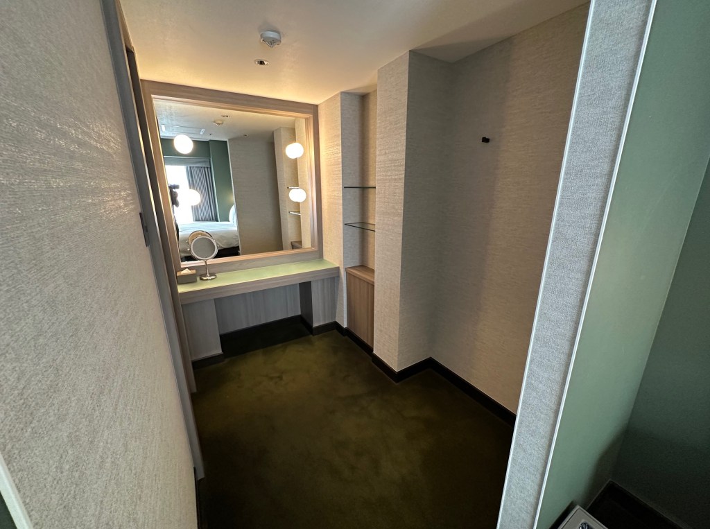 A dressing table/vanity is available right outside the main bathroom entrance.