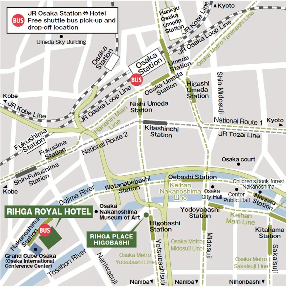 While the hotel is a bit away from the main Osaka Station, they provide a shuttle bus every 15 minutes from the station, making it very convenient. It is also located right next to Nakanoshima Station (subway), which provides easy access to Osaka Castle (though it still requires a fair amount of walking).