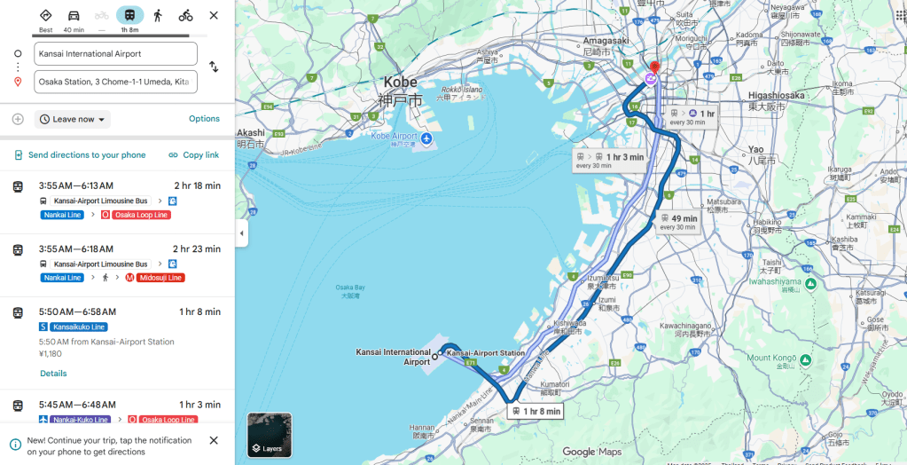Let’s start! If you’re coming from Kansai International Airport, you can take the train directly to Osaka Station. It takes about one hour.