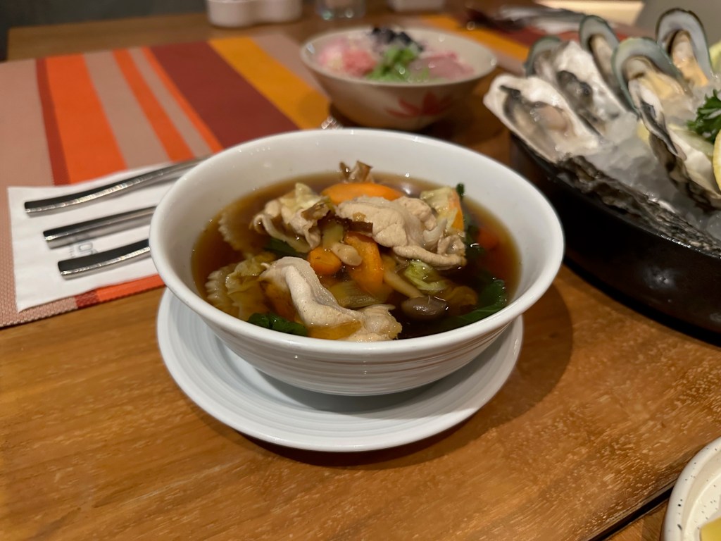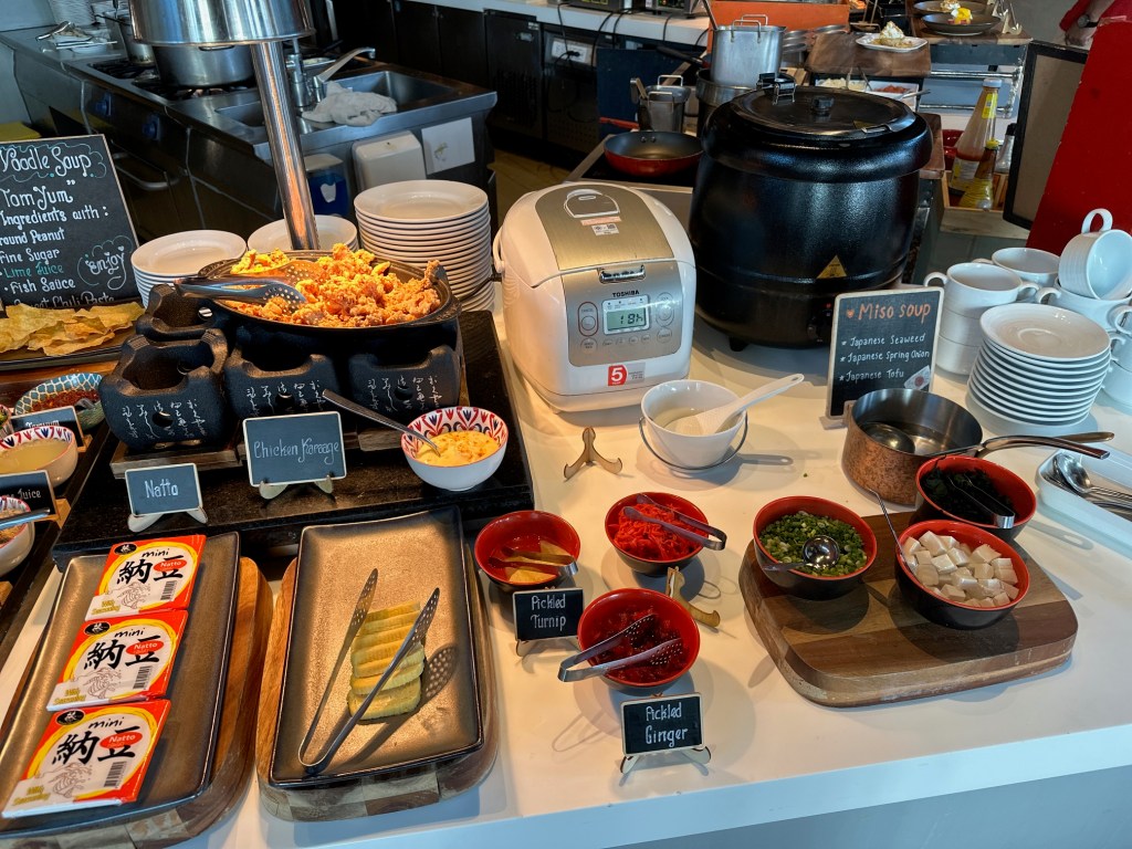The Japanese food includes Chicken Karaage (fried chicken), Miso Soup, and Natto.
