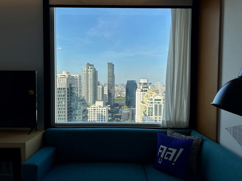 We’ve arrived at a hotel in the center of one of Bangkok’s non-stop districts, close to countless bars, restaurants, and eateries.