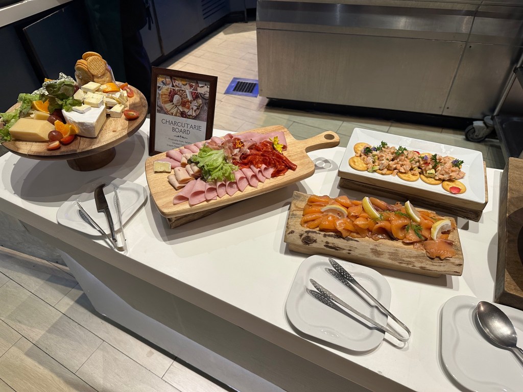 Cold cuts, cheese, and smoked salmon.