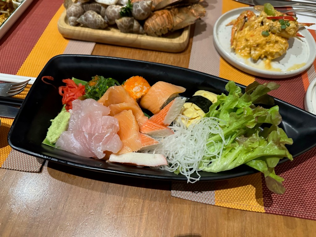 ทั้งกุ้ง กั้งกระดาน ปลาหมึก ปู และมี ปลาดิบด้วยนะครับ