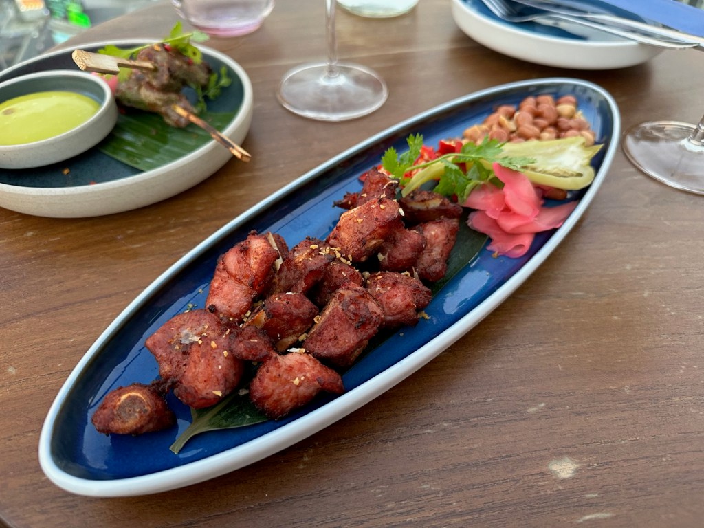 Crispy fermented pork ribs (Naem) that are absolutely delicious! They deliver a bold, authentic Isan flavor that I’m totally in love with. A perfect, savory snack to enjoy throughout the night.