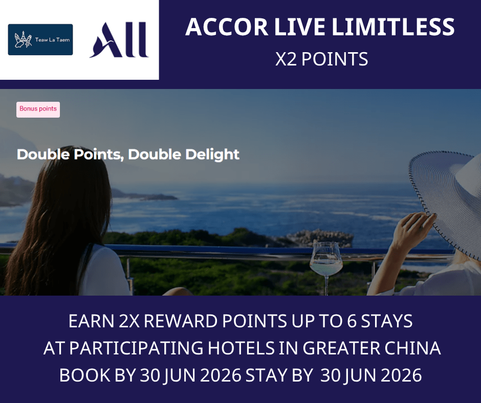 3) The extra points will be credited to the member’s account within 10 working days after the member checks out if the member has registered the offer via Accor’s official website or Accor ALL APP.