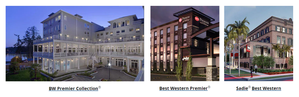ซึ่งทาง Best Western ได้จัดกลุ่มโรงแรมออกเป็น 3 กลุ่มใหญ่ ๆ ภายใต้ร่มเงาของ BWH Hotel Group® ดังนี้