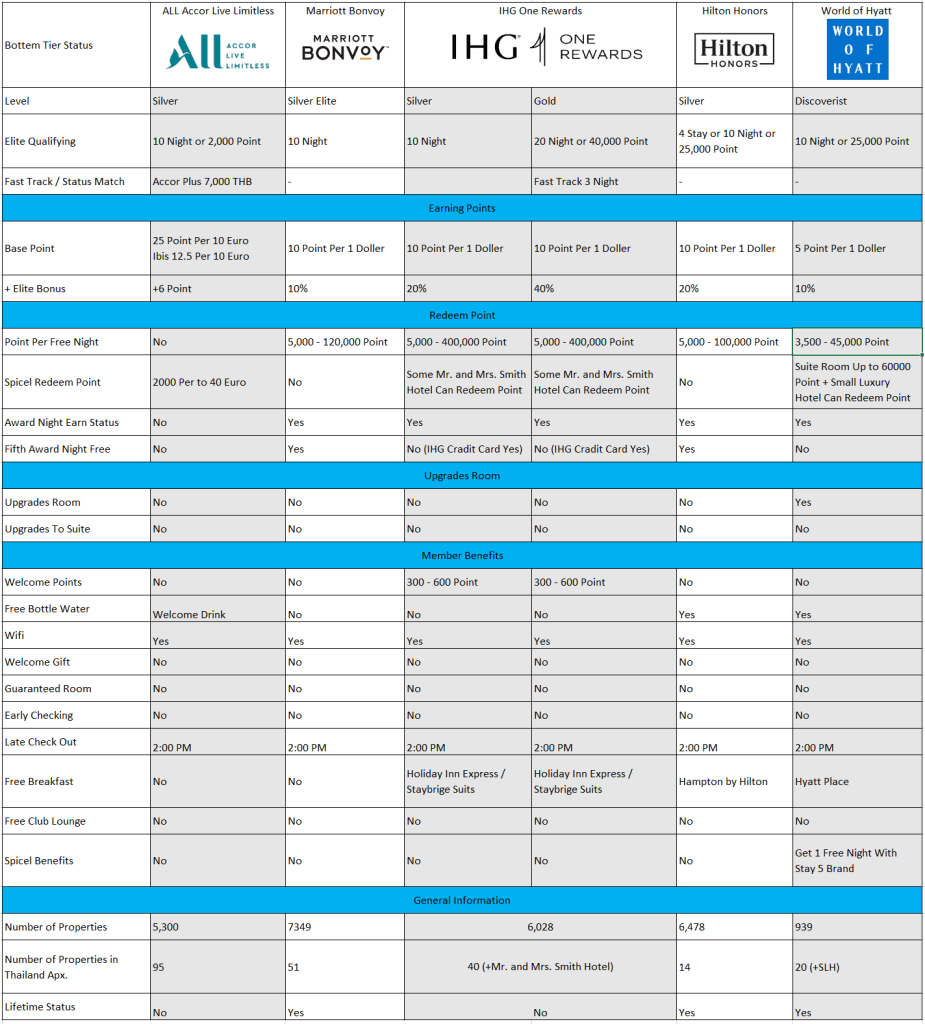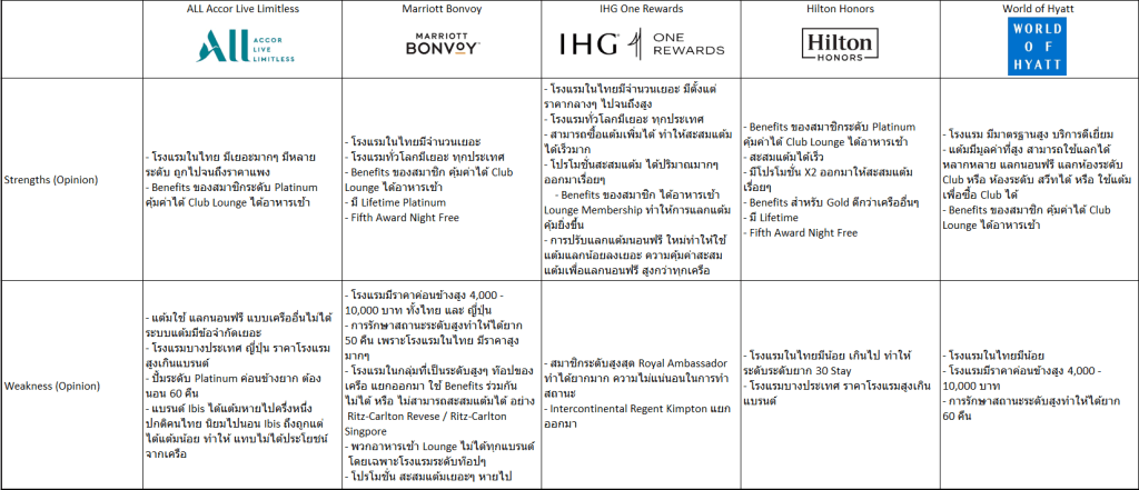 คือ แบ่งเปรียบเทียบ สิทธิประโยชน์ของแต่ละเครือโรงแรม 5 เครือ