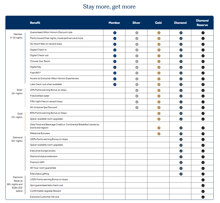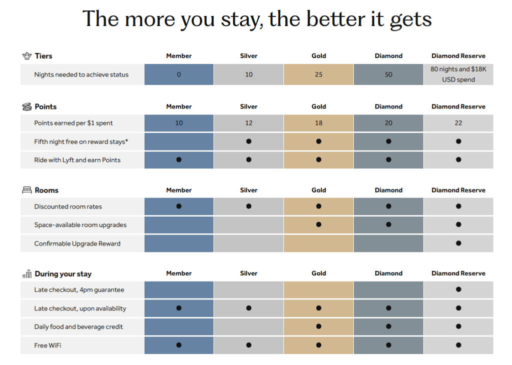 – ระบบสมาชิก ระดับต่างๆ ของ Hilton