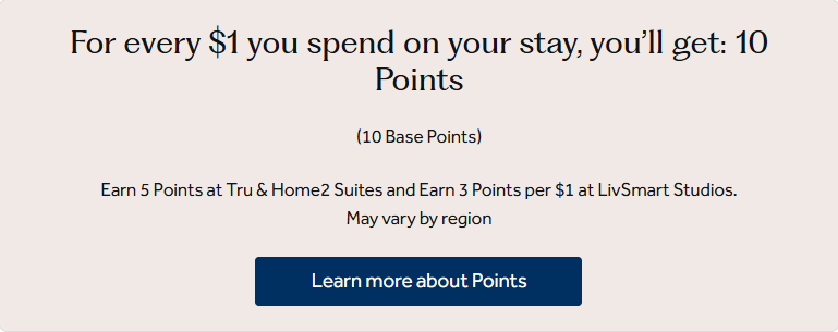 แต่สำหรับแบรนด์ Tru และ Home2 Suites จะได้ 5 แต้มต่อ 1 USD
