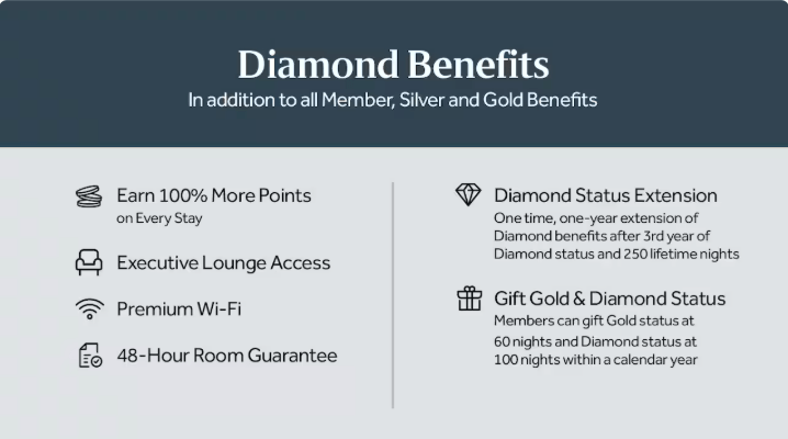 ฟรีคืนที่ 5 + สิทธิประโยชน์ของ Gold Diamond เป็นการรูปแบบที่คุ้มค่าที่สุดของเครือ Hilton ครับ