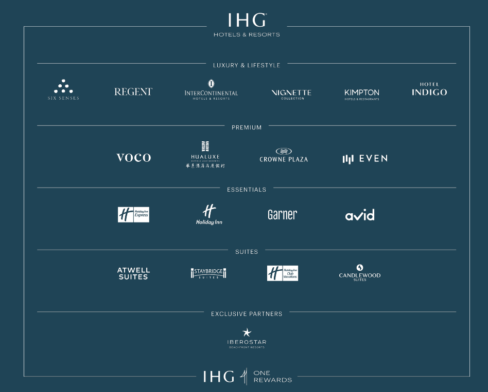 ชื่อเต็มๆ IHG Hotels & Resorts ก็คือ Intercontinental Hotel Group มีโรงแรมทั้งหมดทุกแห่งอยู่ในเครือ ประมาณ 6000 ที่ 100 ประเทศ