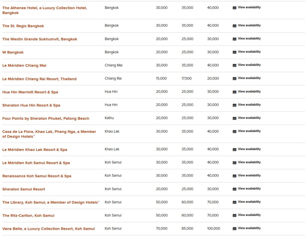 จะเห็นได้ว่าสิทธิประโยชน์ ส่วนมากจะอยู่ตั้งแต่ระดับ Platinum ขึ้นไป และจะมีแยกย่อยแต่ละโรงแรมอีกด้วย