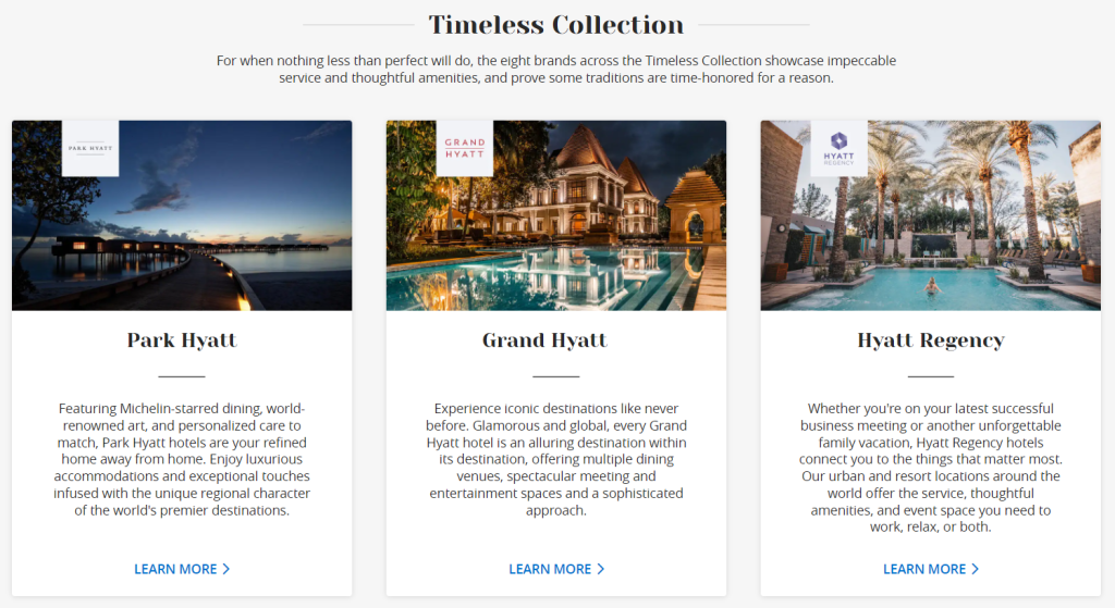 Hyatt รวบรวมกลุ่มโรงแรมดั้งเดิม Traditional Hotel ไว้ในกลุ่มนี้ อย่าง แบรนด์หลักๆ ของเครือ อย่าง